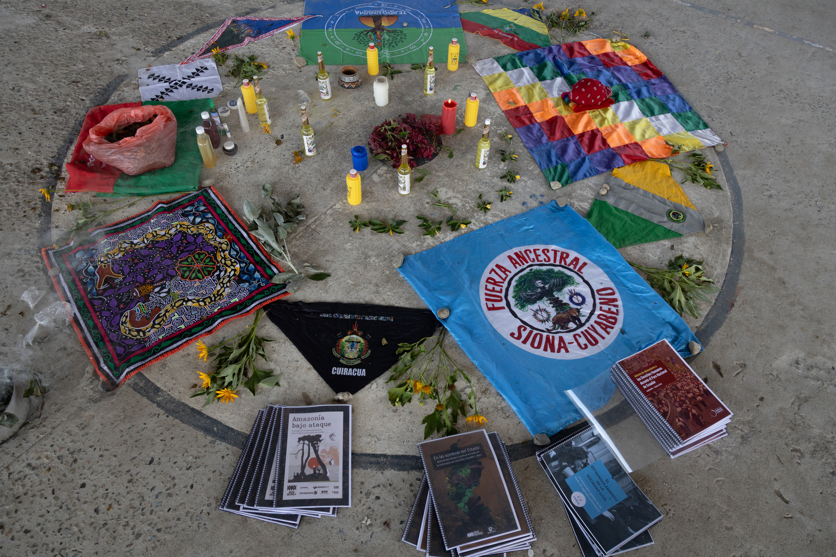 Narváez; Robert Molina, ex coordinador de la guardia indígena del Consejo Regional Indígena del Cauca, Colombia; y Mario Erazo, líder del pueblo indígena ziobain, de la frontera colombiana con Ecuador, conforman el equipo Punta de Lanza, impulsado por la organización no gubernamental Amazon Frontlines y la fundación Alianza Ceibo, las cuales organizaron el encuentro.